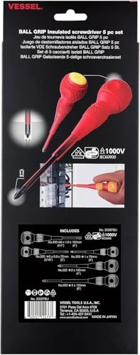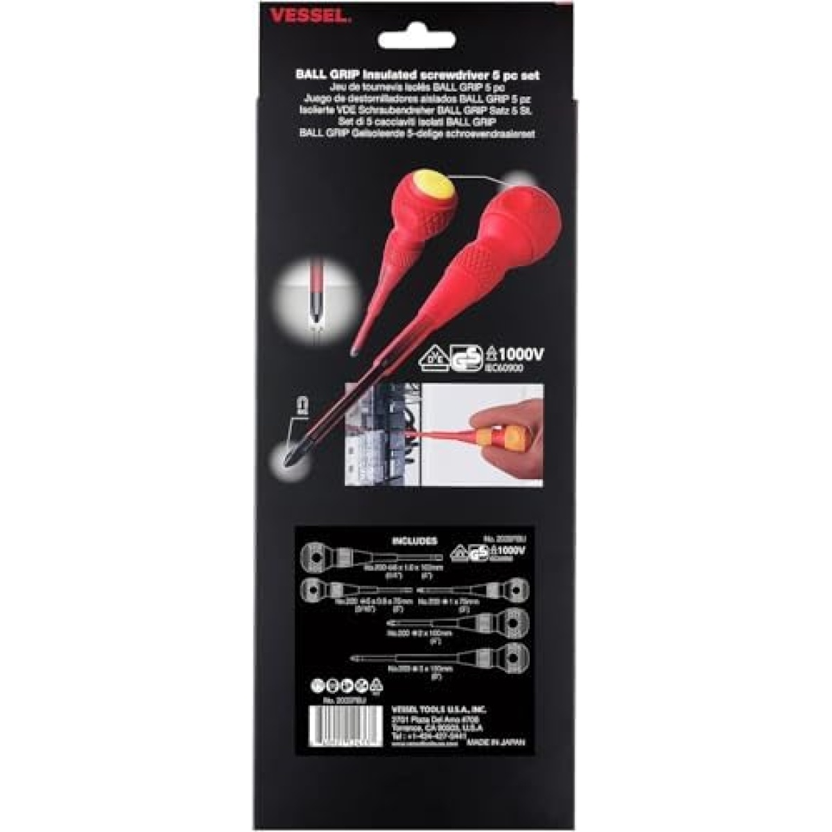 VESSEL BALL GRIP Insulated Screwdriver 5PC. Set No.2005PBU made in Japan by VESSEL