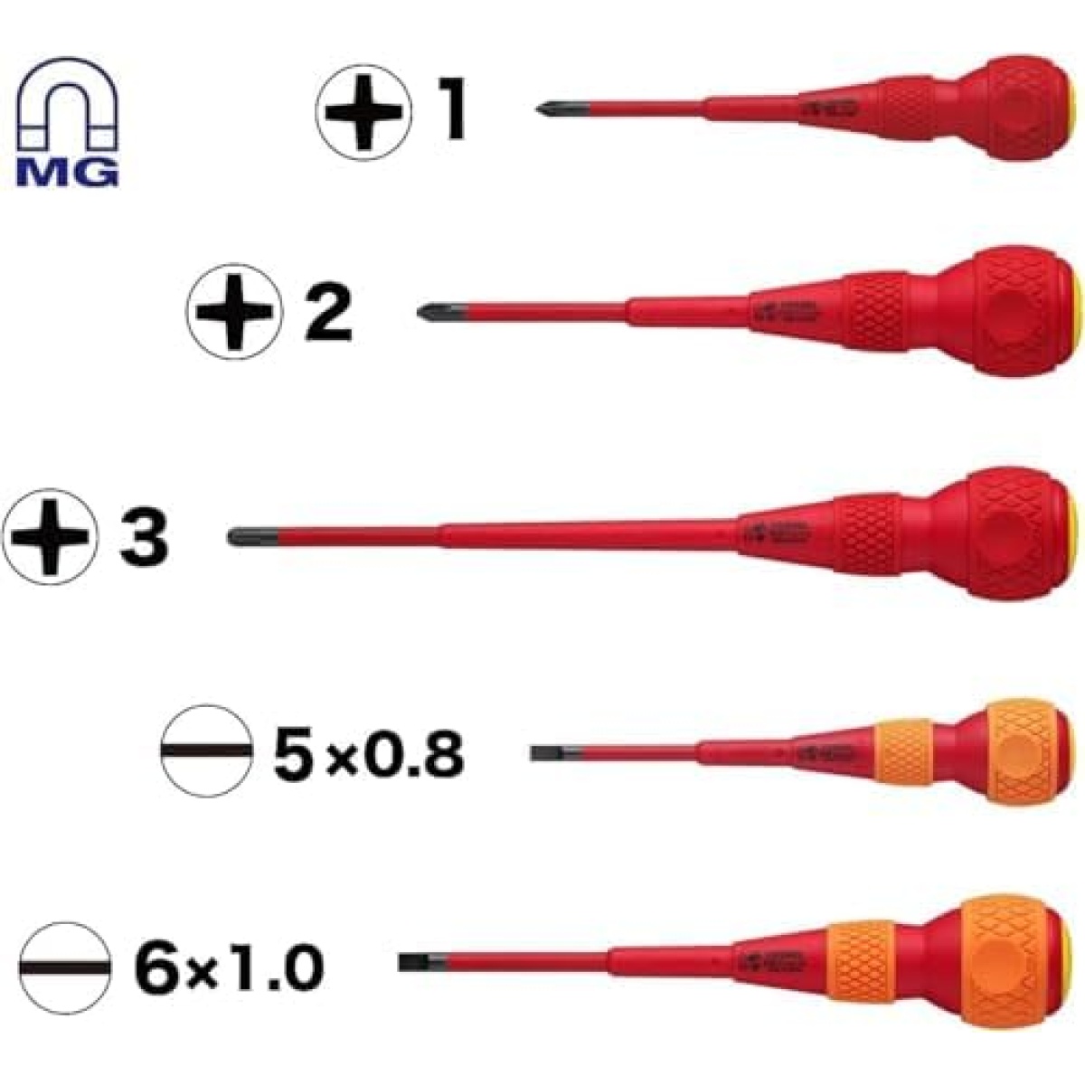 VESSEL BALL GRIP Insulated Screwdriver 5PC. Set No.2005PBU made in Japan