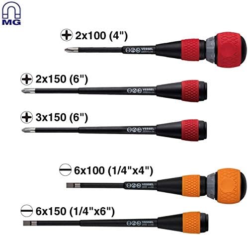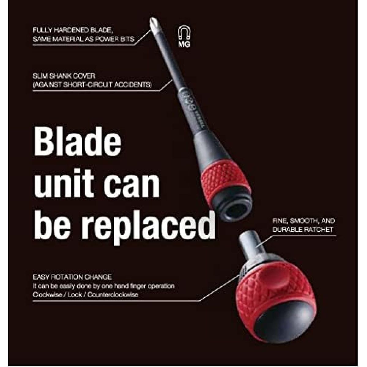 VESSEL BALL GRIP Ratchet Screwdriver 5PC. Set (3PC. of Replacement Blade)