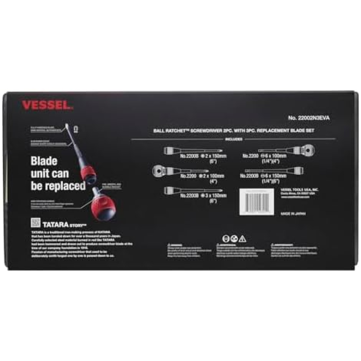 No. 22002N3EVA BALL RATCHE Screwdriver 2PC. with 3PC. Replacement Blade Set