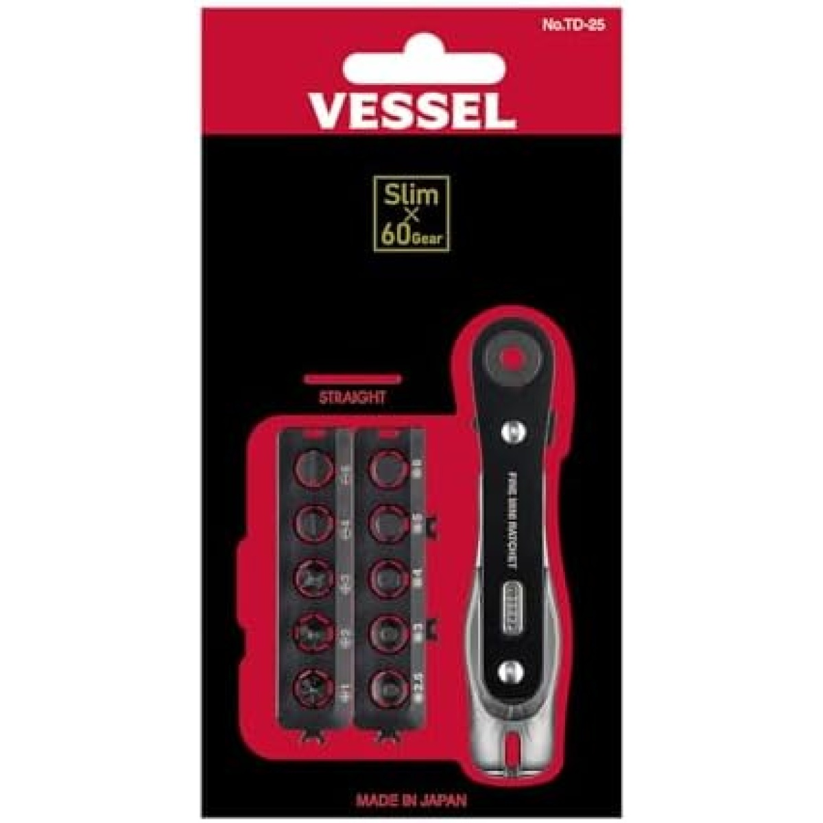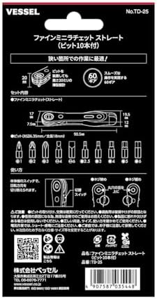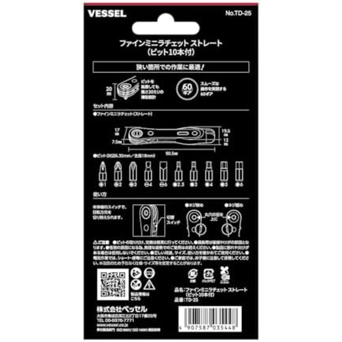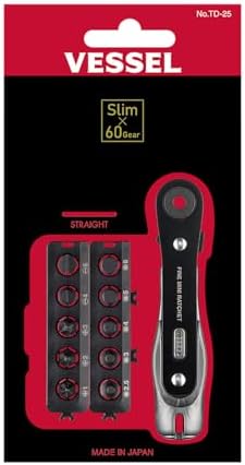 Vessel TD-25 Ultra Thin Fine Mini Ratchet Screwdriver, Straight Type, 10 Bits
