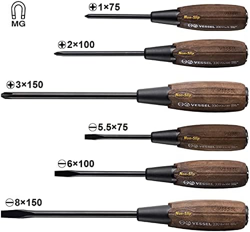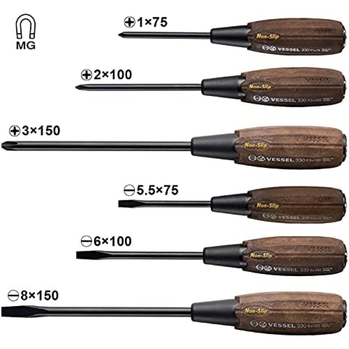 Vessel Woody Penetrating Screwdriver Non-Slip Grip Set of 6 (Boxed) 336PS